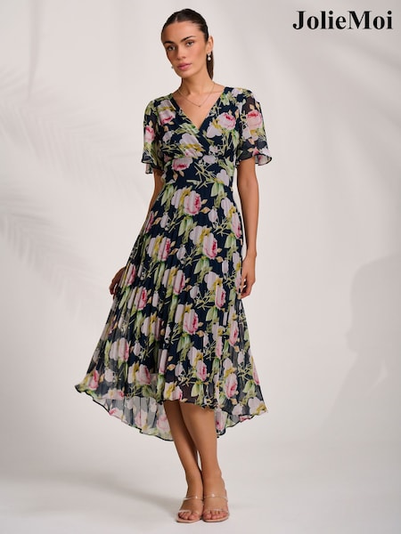 Jolie Moi Black Pleated Chiffon Maxi Dress