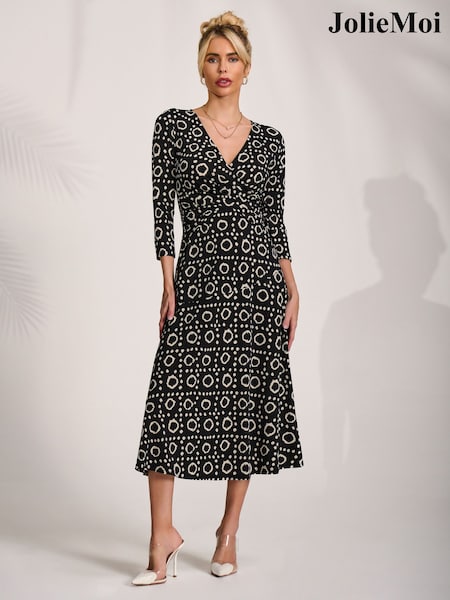 Jolie Moi Black Fit and Flare Jersey Midi Dress