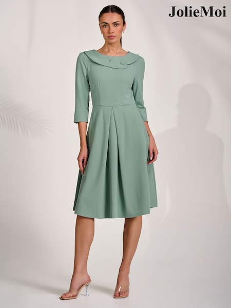 Jolie Moi Green Roll Collar Midi Dress