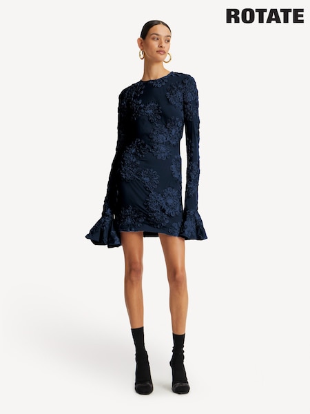 Love & Roses Black Floral Embroidered Faux Leather Mini Dress