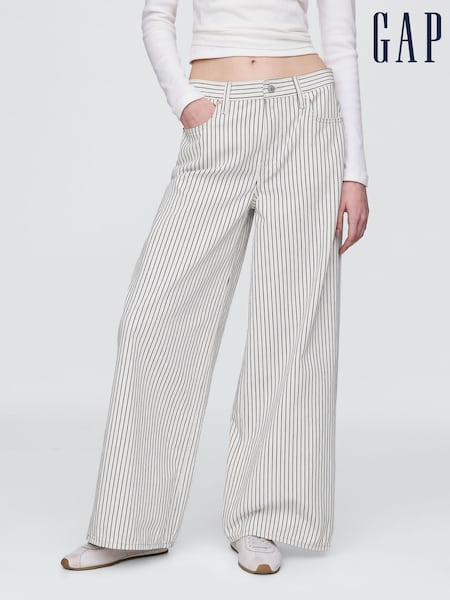 Gap White/Black Stripe Mid Rise Denim Stripe Baggy Jeans
