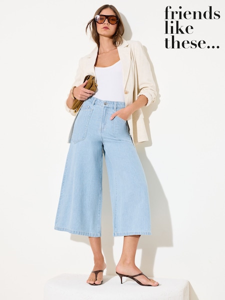 Friends Like These Mid Wash Petite Denim Wide Leg Culotte Jeans
