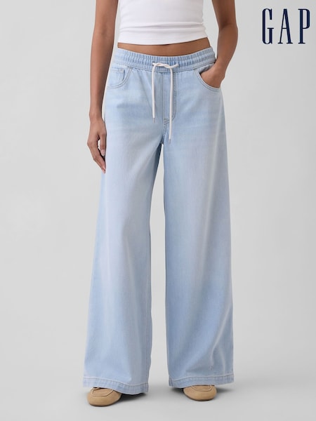 Indigo Blue High Rise Flexi Fit Stretch Pull On Wide Leg Jeans