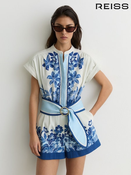 Reiss Neutral Harri Palm Print Belted Playsuit