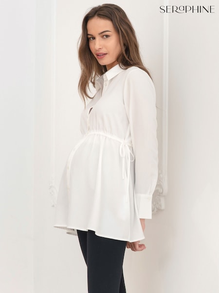 Seraphine White Ivory Maternity & Nursing Drawstring Detail Shirt