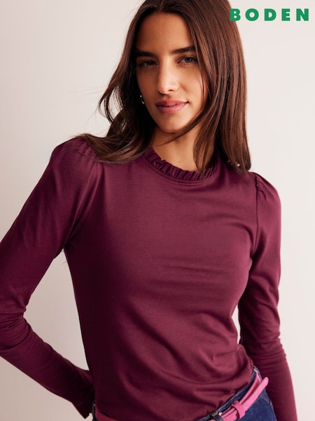 Boden Purple Isla Long Sleeve Jersey Blouse