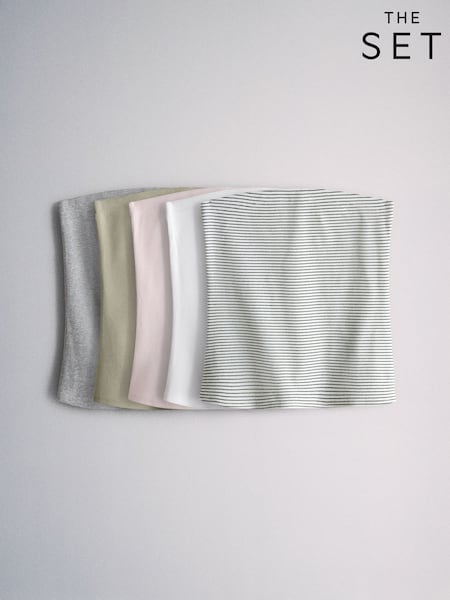 The Set 5 Pack Pastels Ribbed Bandeau Tops Pink/Grey Marl/White/Stripe
