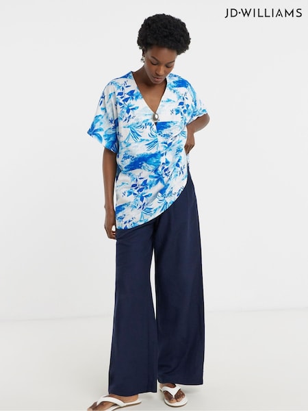 JD Williams Blue Printed Linen Mix Metal Trim Tunic Top