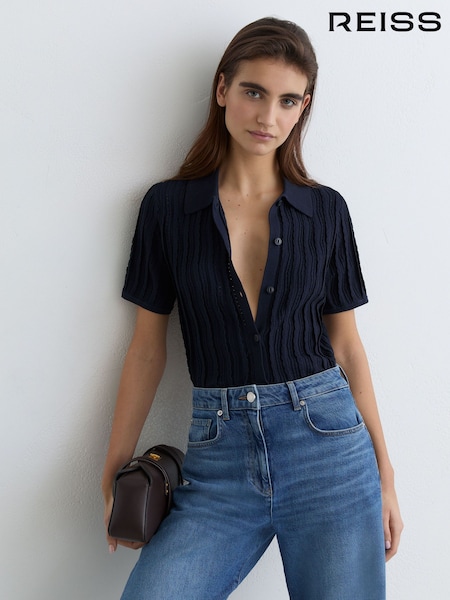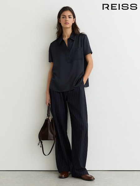 Reiss Navy Polly Silk Half-Button Short-Sleeve Shirt
