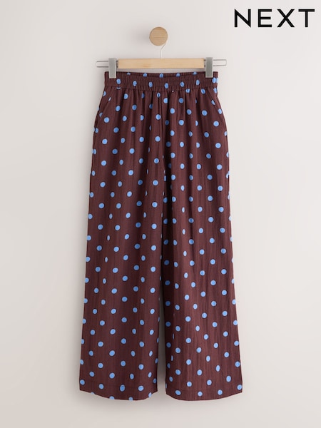 Chocolate Brown/Blue Spot Pull On Super Wide Leg Trousers