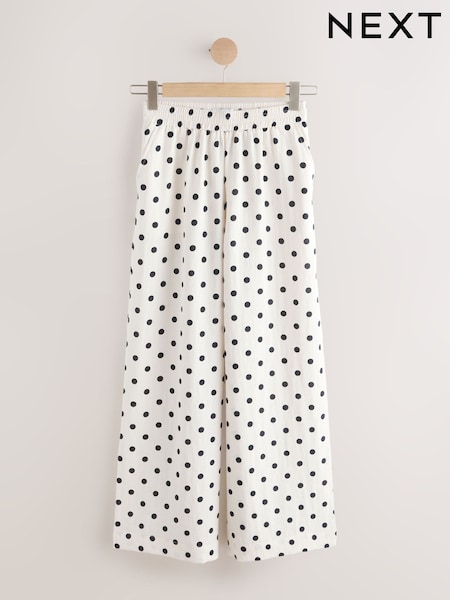 White/Black Spot Pull On Super Wide Leg Trousers