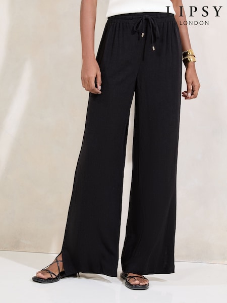 Lipsy Black Wide Leg Touch of Linen Trousers