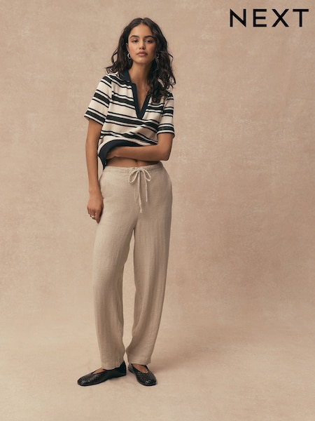 Neutral/Stripe Wide Leg Trousers with Linen 2 Pack