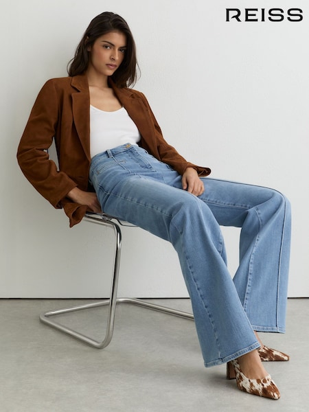 Reiss Mid Blue Claude Pintuck-Detail Flared Jeans