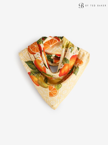B by Ted Baker Viscose Square Lightweight Yellow Fruit Scarf