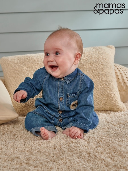 Mamas & Papas Denim Boilersuit With Woven Badge