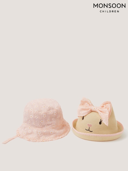 Căciuli brodate pentru bebeluși Monsoon cu model iepuraș 2-Pack