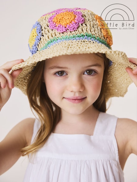 Little Bird by Jools Oliver Scalloped Edge Straw Effect Rainbow Flower Hat