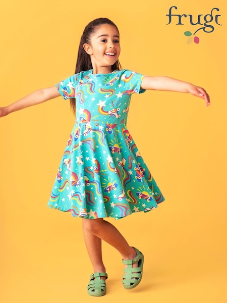 Rochie tip skater Frugi Verde pentru petrecerea de Crăciun