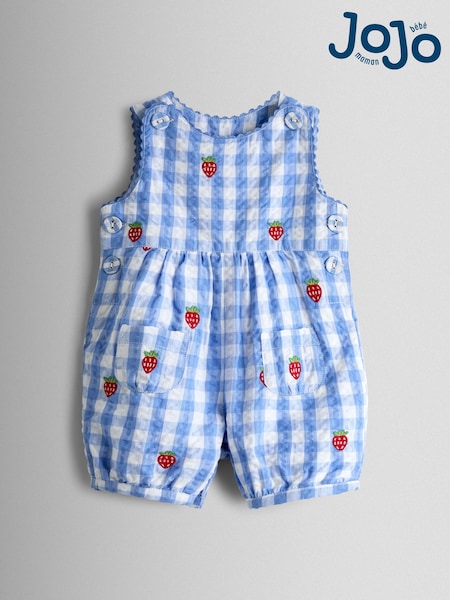 JoJo Maman Bébé Embroidered Seersucker Gingham Dungaree