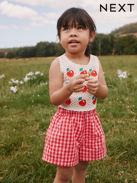 Roșu - Crochet Cherry Top With Gingham Shorts (12mths-7yrs)