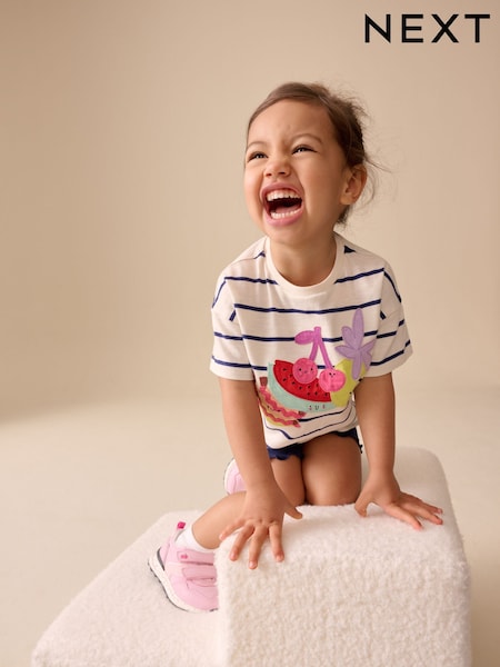 Albastru/ecru - Short Sleeve T Shirt and Cycle Short Set (3mths-7yrs)