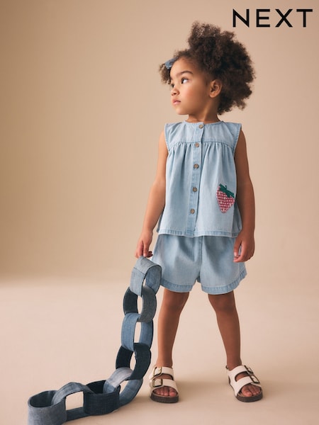 Strawberry Embroidered Denim - Blouse And Short Co-ord Set (3mths-8yrs)