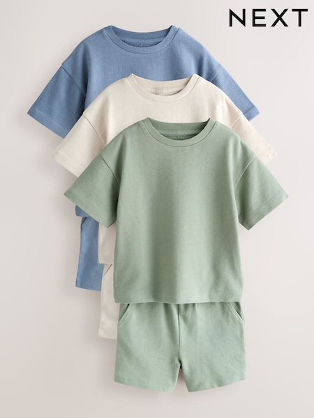 Blue/Green/Neutral Textured - Set de tricou cu mânecă scurtă și pantaloni scurți 3 pachet (3luni -7ani)