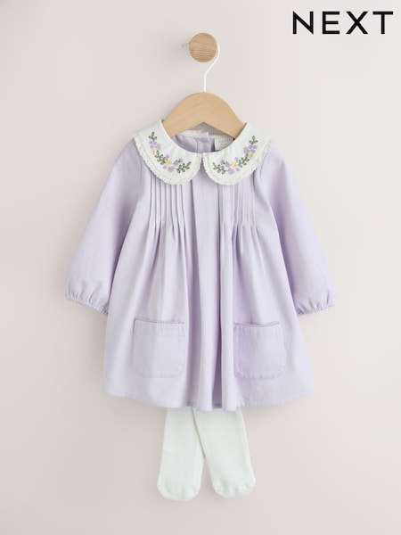 Violet - Rochie pentru bebeluși cu guler țesut și dresuri (0luni-2ani)