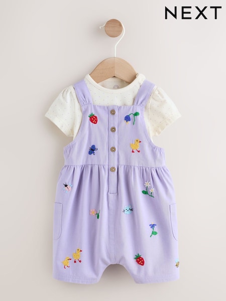 Purpuriu personaj - Set salopetă din denim și body pentru bebeluși 2 piese (0luni -2ani)