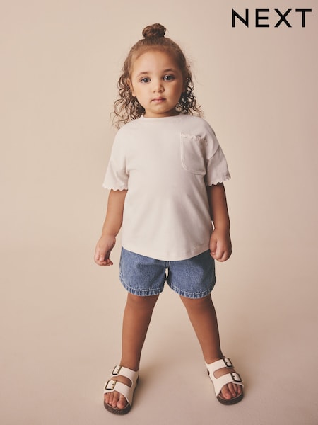 Ecru alb - Tricou cu mânecă scurtă cu tiv Ric Rac (3luni-7ani)