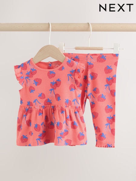 Roșu căpșuni - Set Rib Top și Colanți pentru bebeluși 2 Pieces (0luni-2ani)