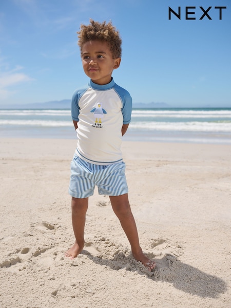 Pescăruș Albastru/Ocru - Set de vestă și pantaloni scurți de baie cu protecție solară Sunsafe Rash (3luni-7ani)