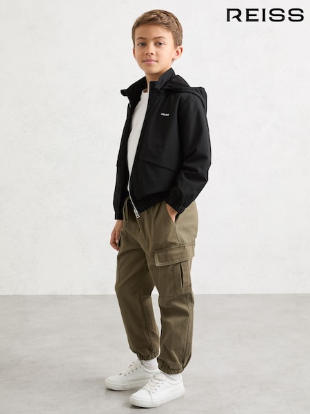 Negru - Reiss Ash Zip-Through Hooded Logo Jacket