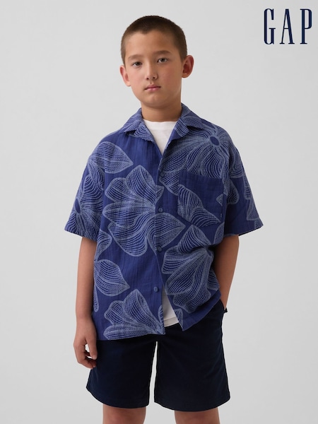Albastru - Gap Relaxed Holiday Shirt (4-13yrs)