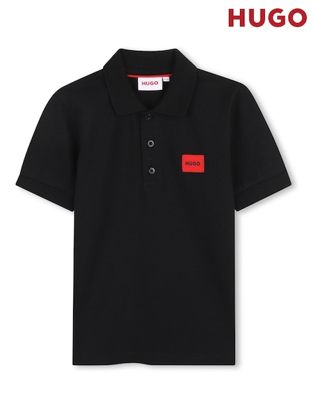Negru - HUGO Logo Short Sleeve Polo Shirt