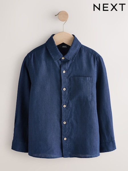 Bleumarin - Cămașă din Lenjerie de pat cu Mânecă lungă (3-16ani)