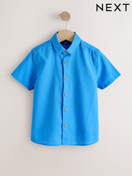 Albastru deschis - Cămașă din amestec de in cu mânecă scurtă (3-16yrs)