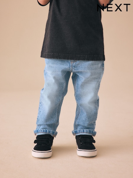 Denim albastru deschis cu aspect uzat - Blugi largi (3luni-7ani)