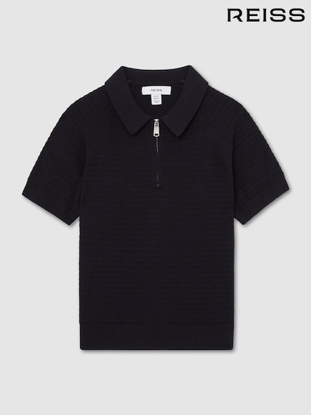 Bleumarin - Reiss Estate Textured-Knit Half-Zip Polo Shirt