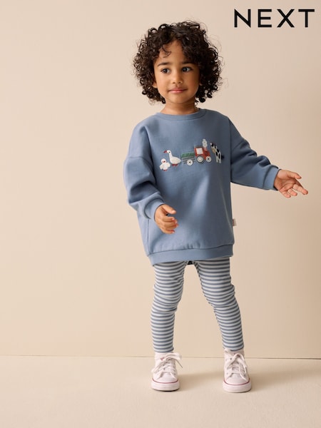 Albastru deschis - Set Hanorac și Colanți Guler rotund (3m-7ani)