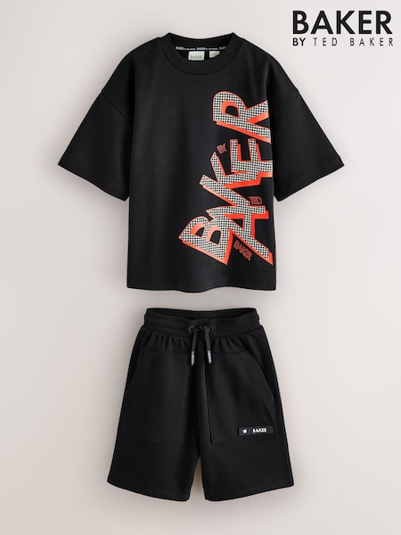 Baker by Ted Baker Oversized Graphic Black T-Shirt and Shorts Set