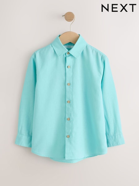 Albastru deschis - Cămașă lejeră cu Mânecă lungă din Blend de Lenjerie de pat (3-16ani)