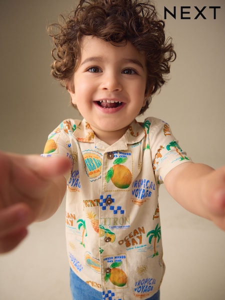 Ecru All Over Print - Short Sleeve Revere Collar Printed Shirt (3mths-7yrs)