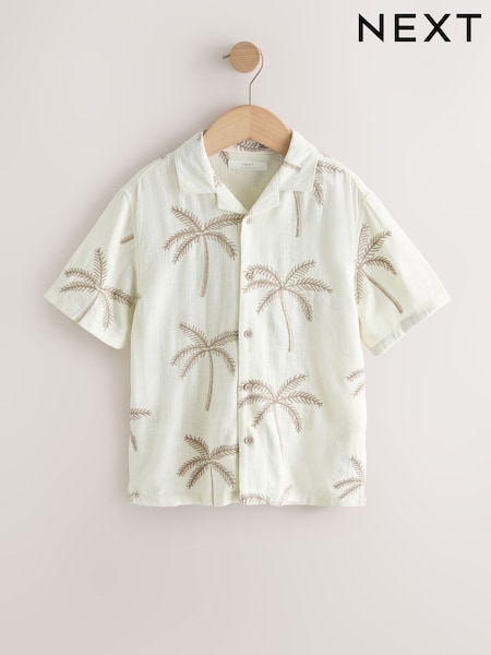 Ecru Palm Embroidery - Cămașă cu guler revere și mânecă scurtă (3-16ani)