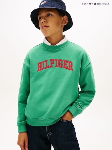 Verde - Tommy Hilfiger Logo Terry Crew Neck Sweatshirt