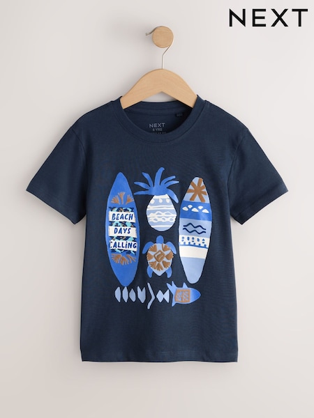 Navy Blue Surf Boards - Tricou cu mânecă scurtă, croială clasică, cu imprimeu grafic (3-16ani)