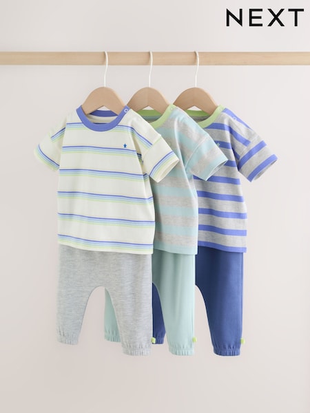 Albastru/verde cu dungi - Set de 6 piese cu tricou Bebeluși și pantaloni sport (0m-3yrs)