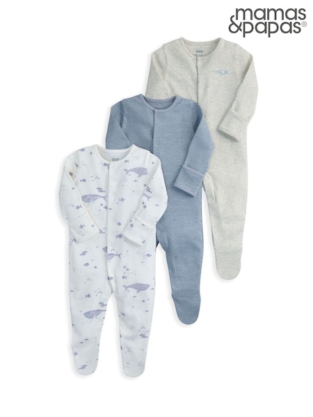 Mamas & Papas Whale Sleepsuits Pack Of 3