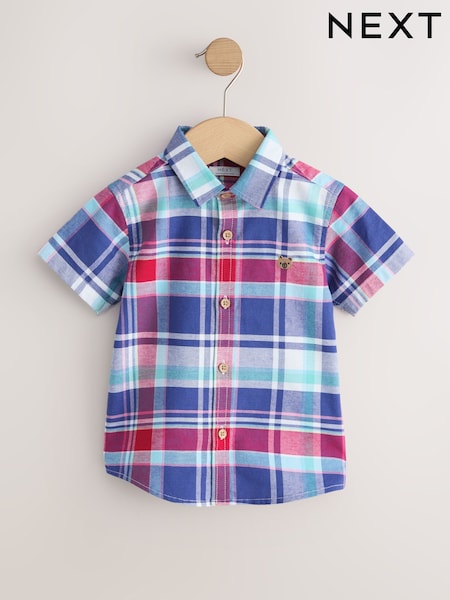 Alb/Albastru/Roșu - Short Sleeve Oxford Check Shirt (6mths-7yrs)